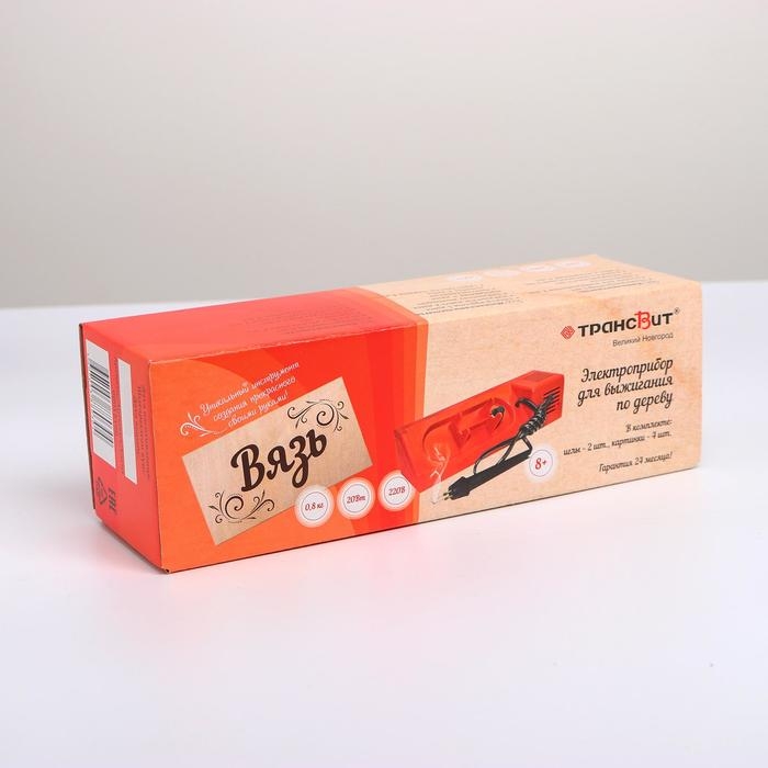Лёгкий и безопасный электроприбор состоит из пластмассового корпуса, понижающего трансформатора, регулятора накала иглы, карандаша со сменными иглами. Его можно использовать как для домашних занятий, так и на уроках труда в школах и детских садах, при обучении в кружках эстетического воспитания. Выжигание по дереву способствует развитию творческих способностей, аккуратности и терпеливости.