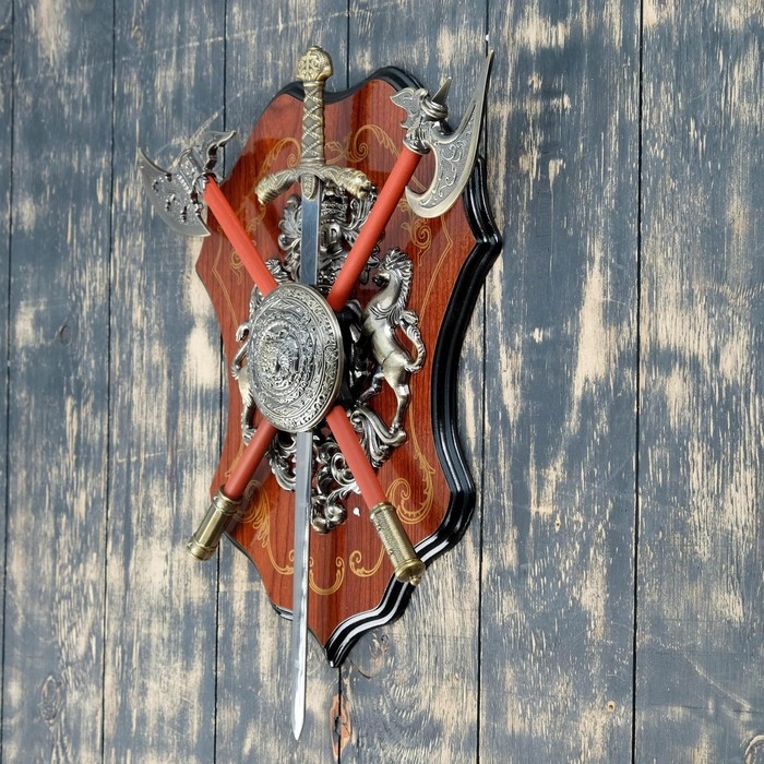 Среди мужских игрушек оружие занимает лидирующие позиции по популярности. Поэтому неудивительно, что мечи, клинки, топоры и прочие воинские атрибуты часто используются в интерьере. Это не просто элемент декора, это символ власти и силы. Такой аксессуар подойдёт для рабочего кабинета или «берлоги».