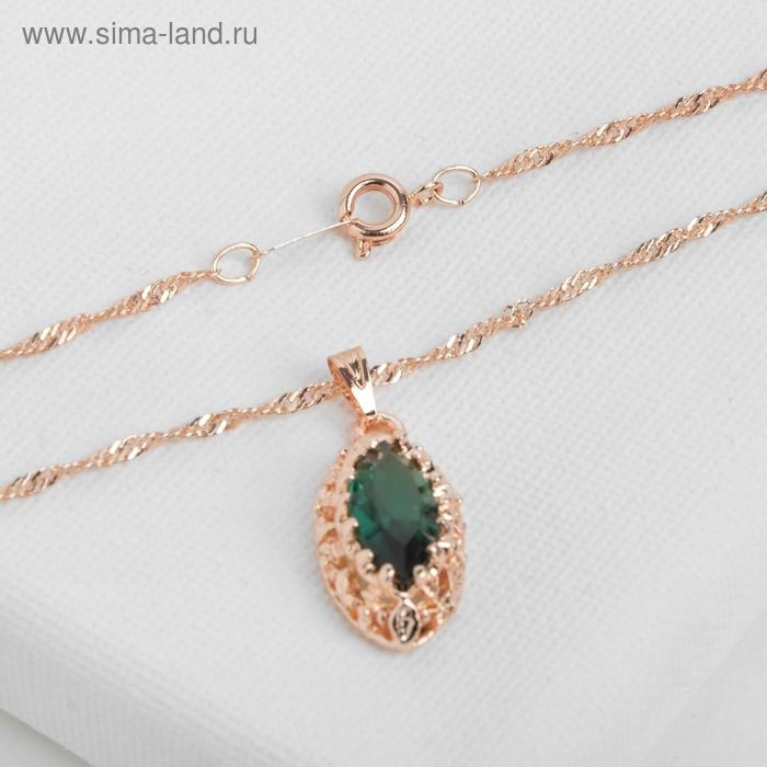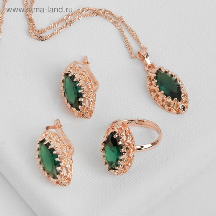 Гарнитур 3 предмета: серьги, кулон, кольцо безмерное «Эдель» овал вытянутый, цвет зелёный в золоте, 45 см