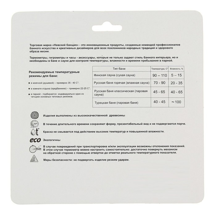 «Кто парится, тот не старится» — вот настоящий девиз всех истинных банщиков! Чтобы создать максимально комфортные условия для пребывания в бане, необходимо знать и температуру воздуха, и уровень влажности. Именно поэтому мы разработали уникальный термогигрометр в авторской деревянной оправе, который идеально впишется в интерьер традиционной русской бани и поможет вам получить массу удовольствия от парения!