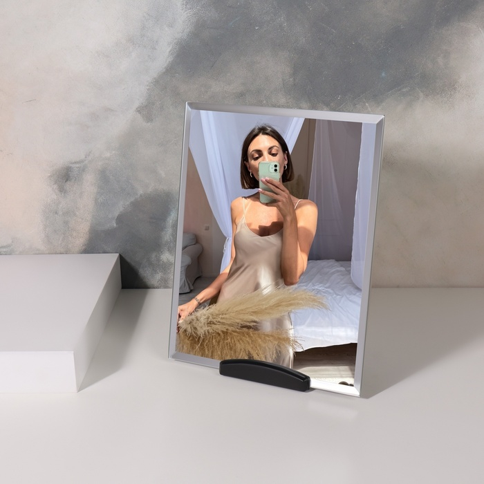 Зеркало на подставке, зеркальная поверхность 17,5 × 22 см, цвет чёрный