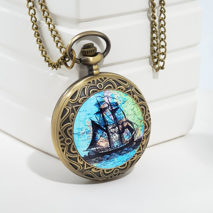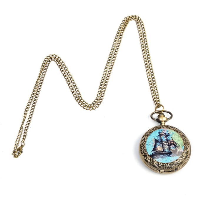 Часы карманные "Корабль", кварцевые, d циферблата-4 см, 5.5 х 4.5 см