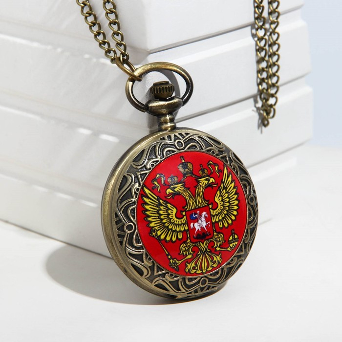 Часы карманные "Двуглавый орел", кварцевые, d циферблата-4 см, 5 х 4.5 см