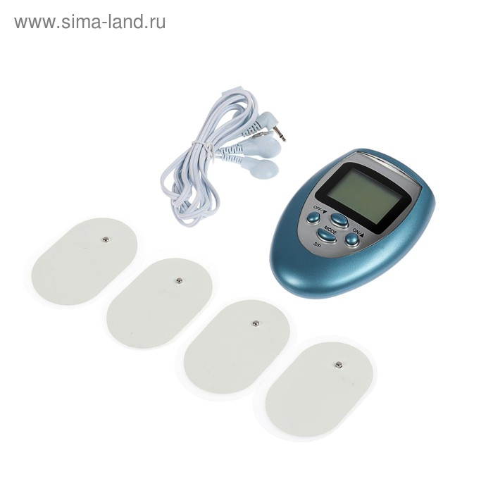Массажёр для тела Luazon LEM-29, миостимулятор, 3 режима, 4 электрода, 2хААА, голубой