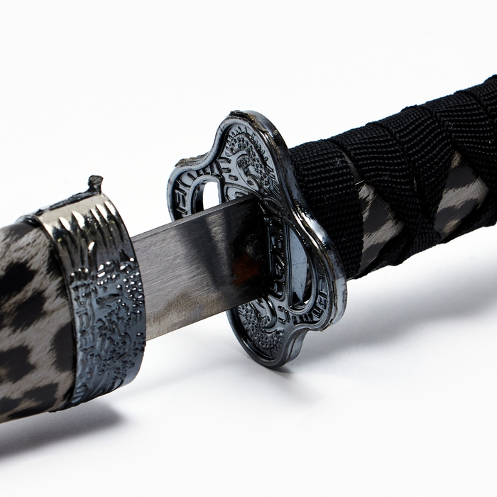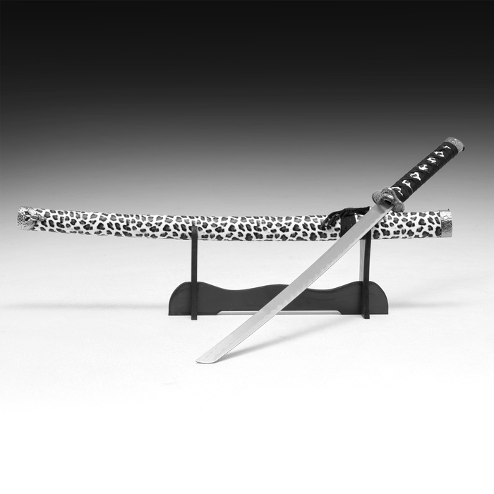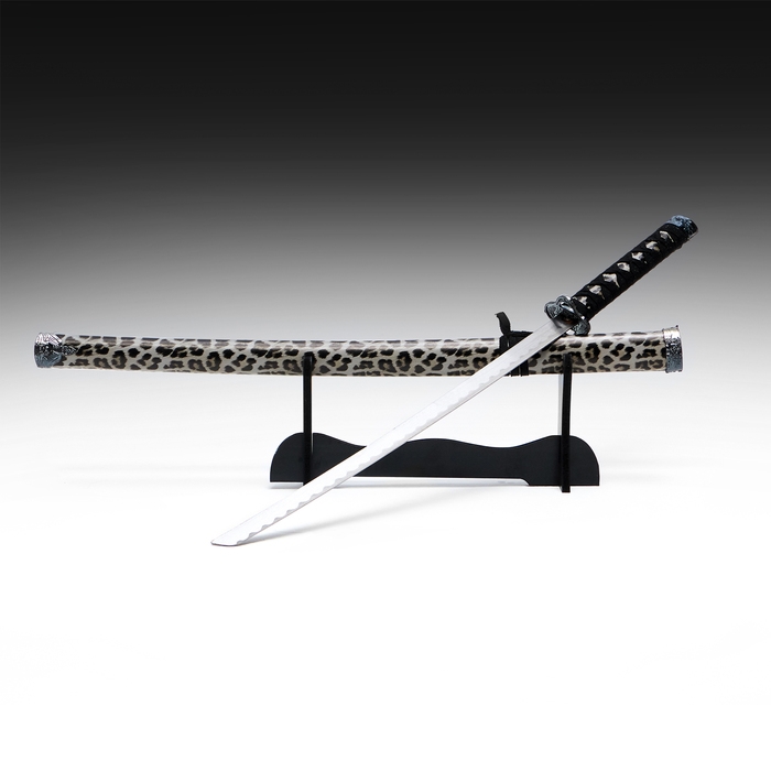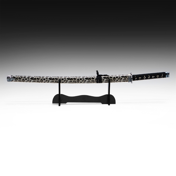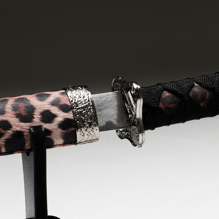 Сувенирное оружие «Катана на подставке», темно серые ножны под леопарда, 89см