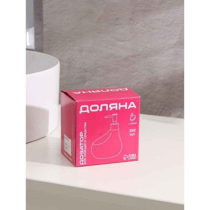 Дозатор для моющего средства с подставкой для губки Доляна, губка в комплекте, 385 мл, цвет белый
