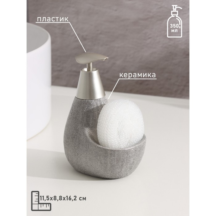 Дозатор для моющего средства с подставкой для губки Доляна «Африка, 350 мл, цвет серый