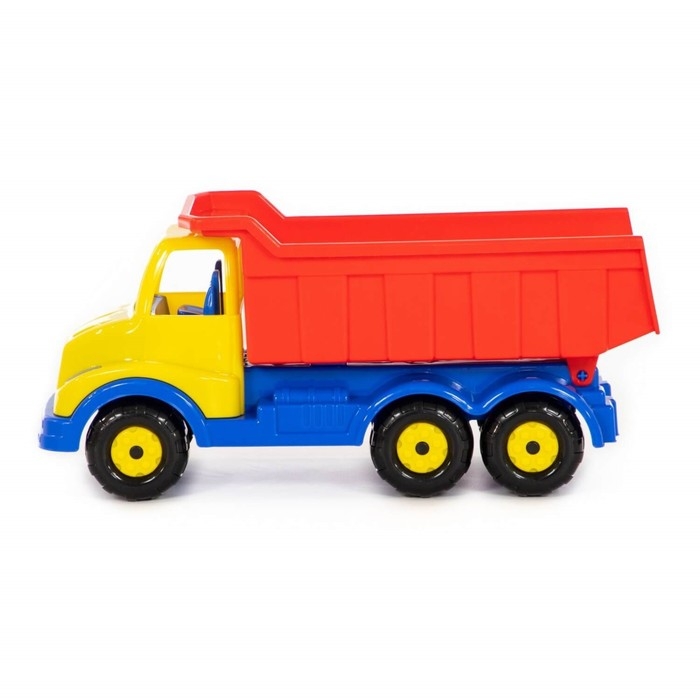 Самосвал — самая популярная игрушка среди мальчиков. Конструкция игрушки выполнена из высококачественного прочного пластика, а также лишена острых углов. Она оснащена вместительным откидным кузовом, в который можно засыпать песок или камушки.