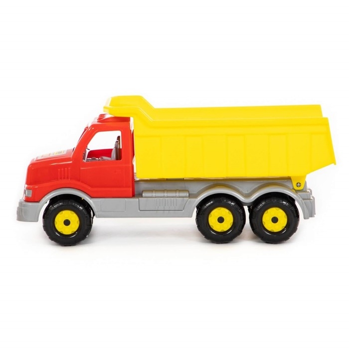 Самосвал — самая популярная игрушка среди мальчиков. Конструкция игрушки выполнена из высококачественного прочного пластика, а также лишена острых углов. Она оснащена вместительным откидным кузовом, в который можно засыпать песок или камушки.