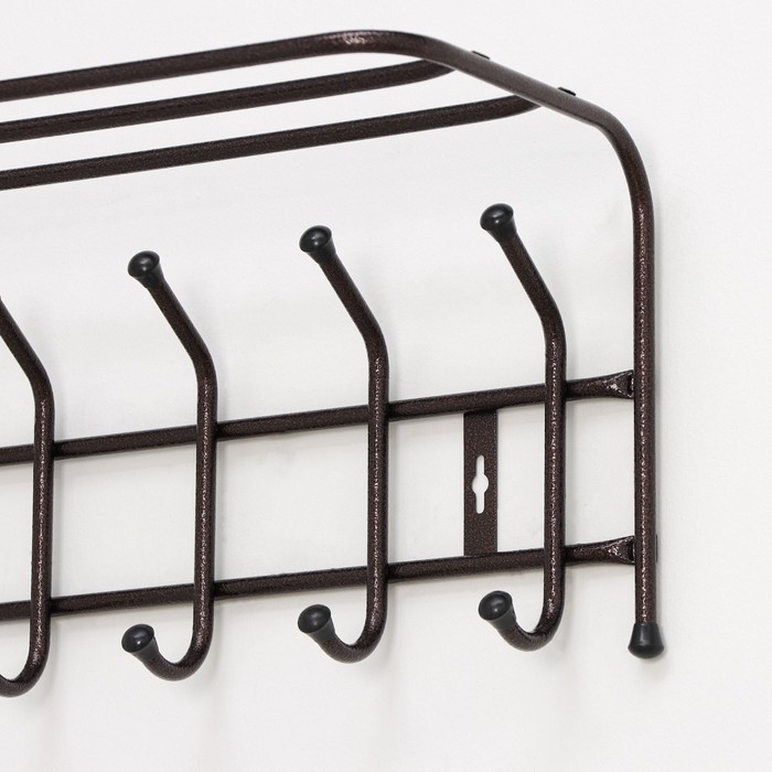 Вешалка настенная с полкой на 6 крючков, цвет медный
