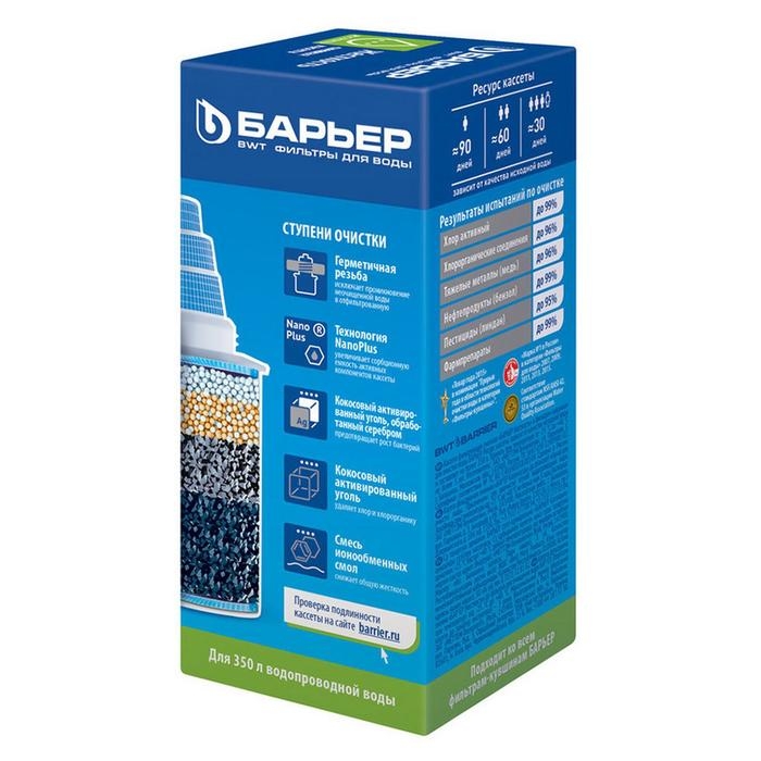 Ресурс — 350 литров. Можно использовать с любым кувшином марки «Барьер».