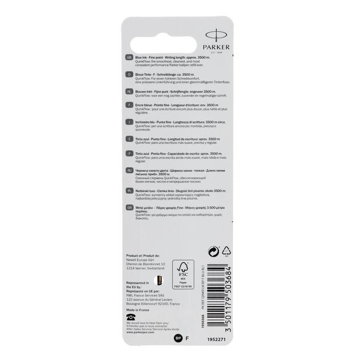 Стержень для шариковых ручек Parker QuinkFlow Premium, туба F, синие чернила