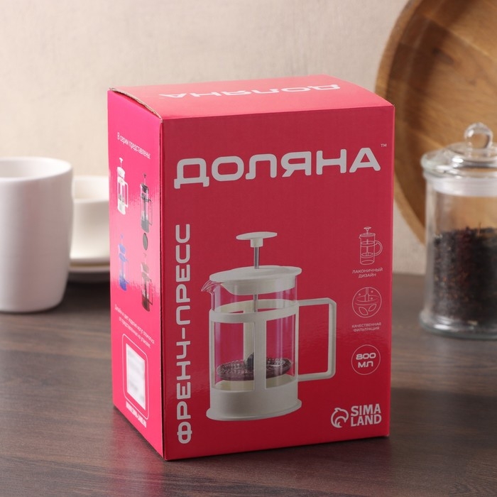 Чайник заварочный френч - пресс Доляна «Классика», 800 мл, стекло, цвет чёрный