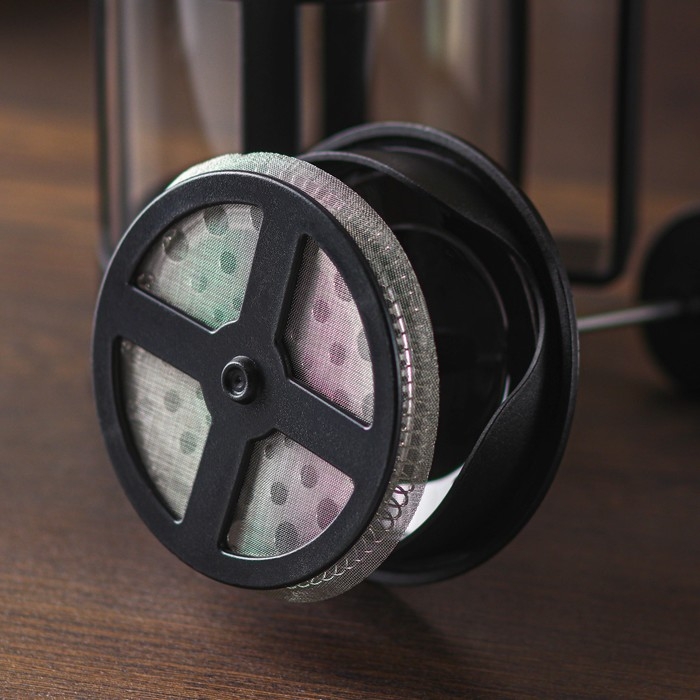 Стеклянный френч-пресс хорошо держит тепло, раскрывает вкус любимых напитков. Стальной поршень не вступает в реакцию с жидкостью, не наделяет ее металлическим привкусом.Принцип работы френч-пресса прост: