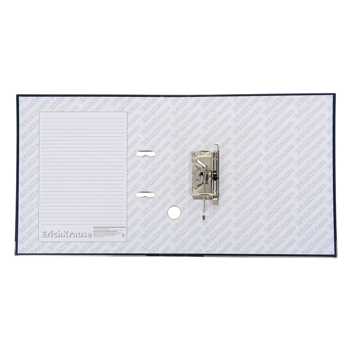 Папка - регистратор формата А4 снабжена стальным арочным механизмом с никелевым покрытием. Изготовлена из плотного картона толщиной 2 мм, покрытого специальным износостойким материалом с фактурным тиснением. Корешок папки шириной 50 мм оснащен прозрачным пластиковым карманом со сменной этикеткой для маркировки. Для удобства использования на корешке имеется металлическое кольцо для захвата. Нижние края обложки защищены металлическим кантом. Металлические фиксаторы удерживают папку в закрытом виде даже при максимальном наполнении. Вместительность до 350 листов бумаги плотности 80 г/м². На форзаце есть шаблон для оглавления.