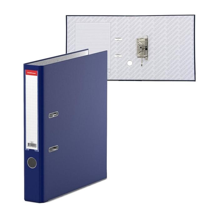 Папка-регистратор А4, 50 мм, ErichKrause Business, собранная, пластиковый карман, синяя, металлический кант, вместимость 350 листов