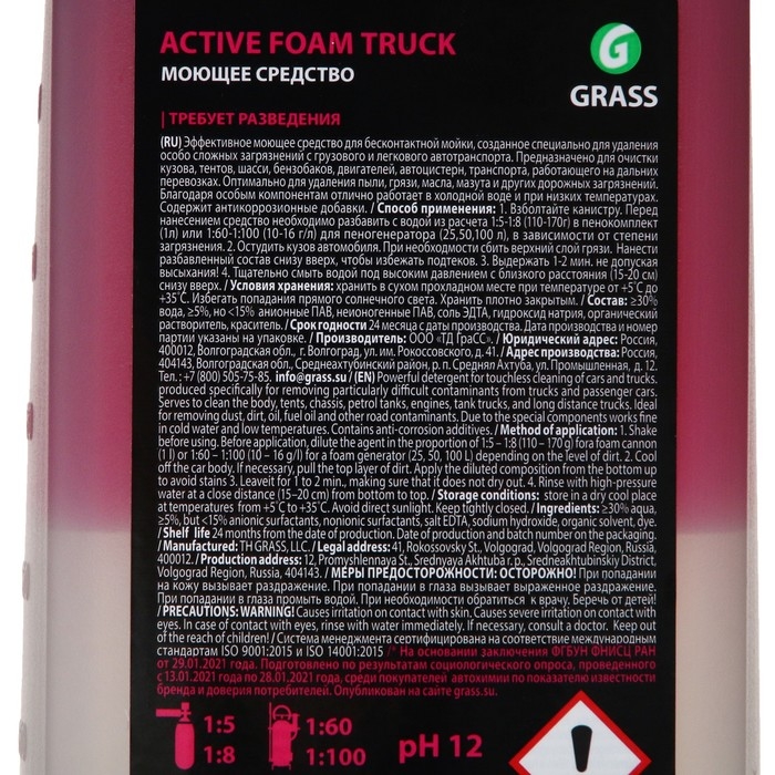 Шампунь для бесконтактной мойки Grass Active Foam Truck, 6 л (1:30-1:70)