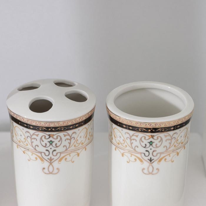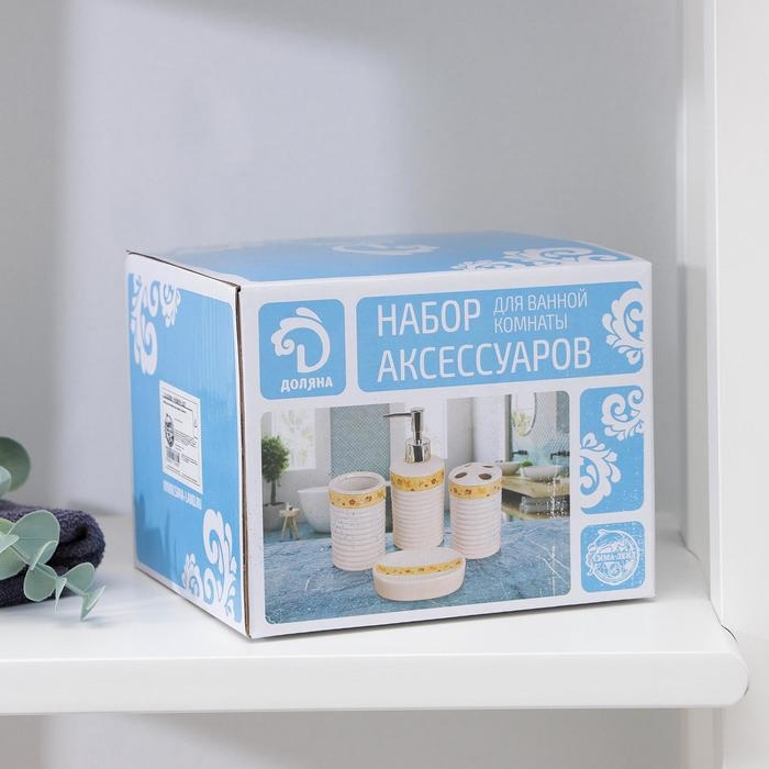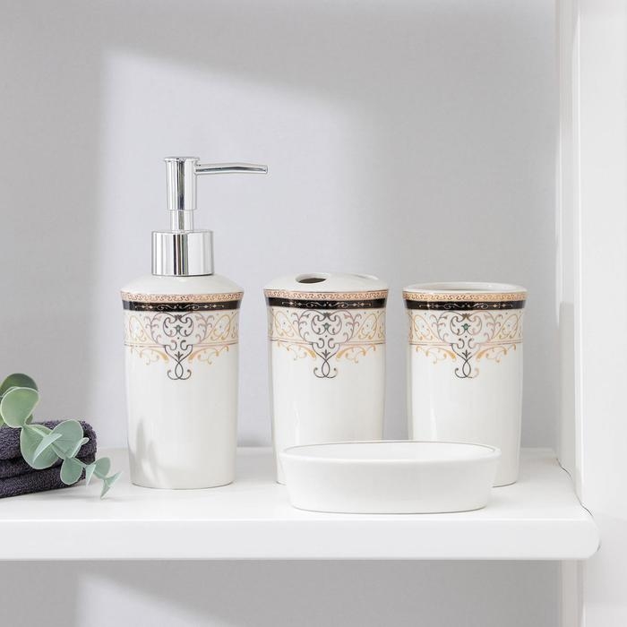 Набор аксессуаров для ванной комнаты Доляна «Золотая роскошь», 4 предмета (дозатор 250 мл, мыльница, 2 стакана), цвет белый