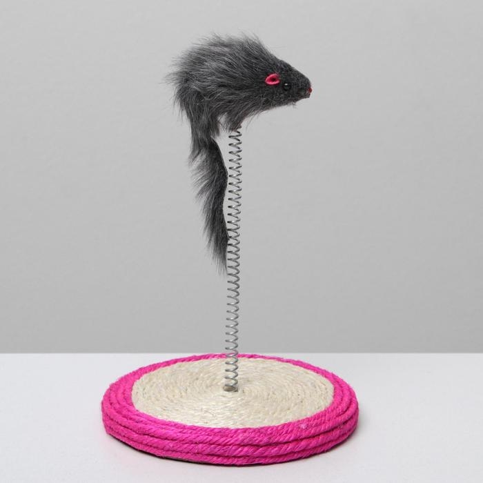 Дразнилка для кошек "Мышь на сизалевой подставке", 15 х 23 см, микс цветов