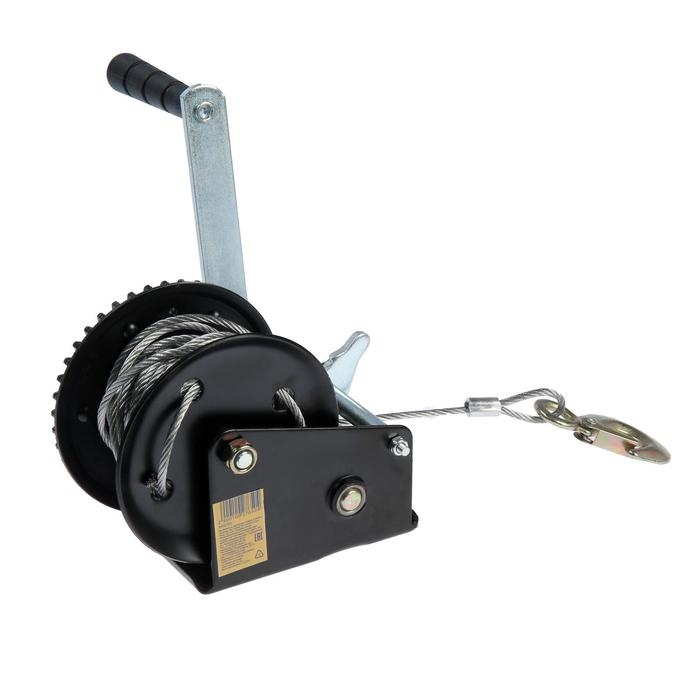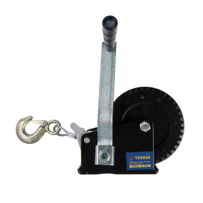 Лебедка ручная барабанная тяговая ТУНДРА, 1000 кг, металлический трос 10 метров