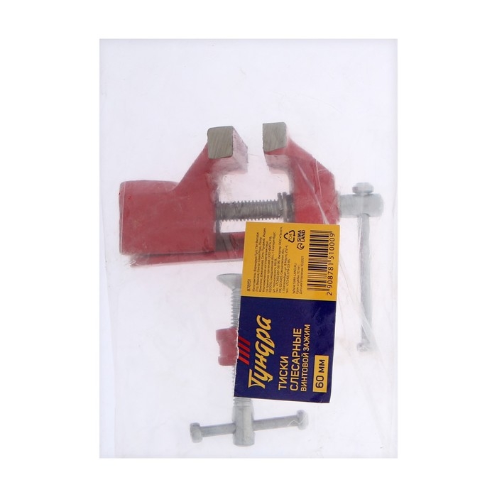 Тиски слесарные ТУНДРА, винтовой зажим, 60 мм