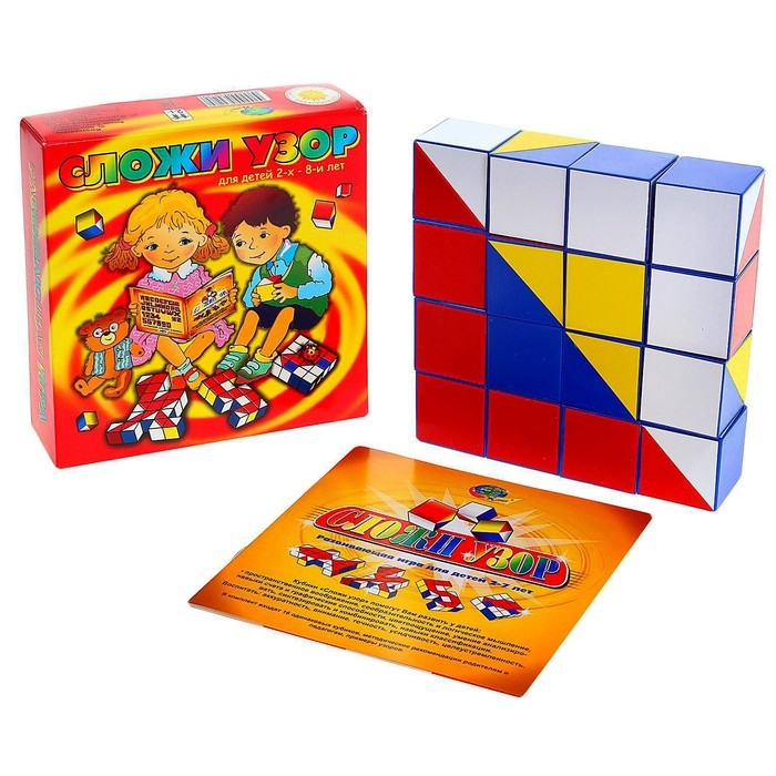 Автор методики – известный педагог-новатор Б.П. Никитин. Большинство его игр – это всевозможные кубики, занимаясь с которыми дети развивают логическое мышление и творческие способности. Кубики «Сложи узор» на протяжении многих лет вызывают живой интерес у детей и взрослых, заставляют подумать над задачкой и порадоваться полученному результату.