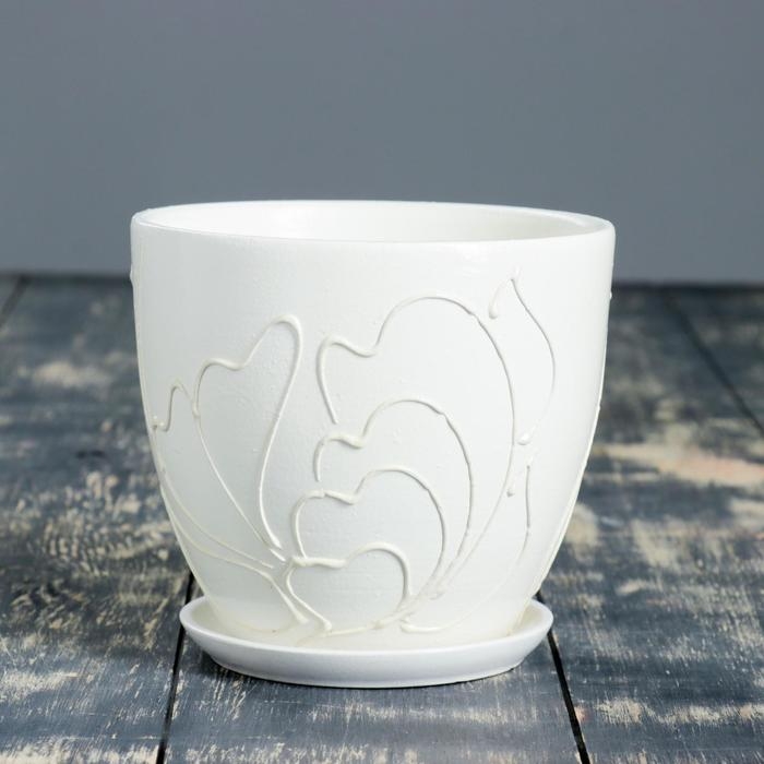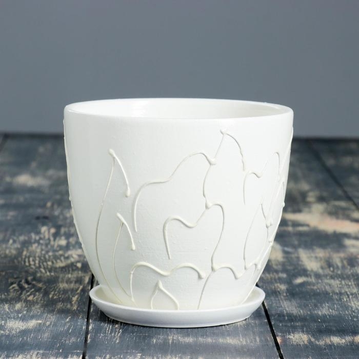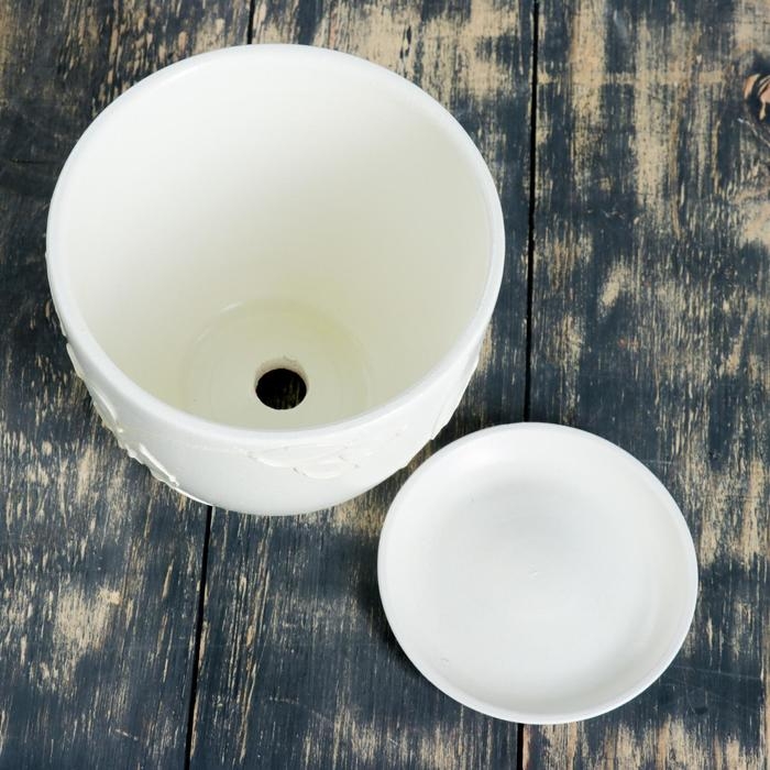 Горшок для цветов «Кураж овал №3», керамический, с поддоном, 1.5 л, белый