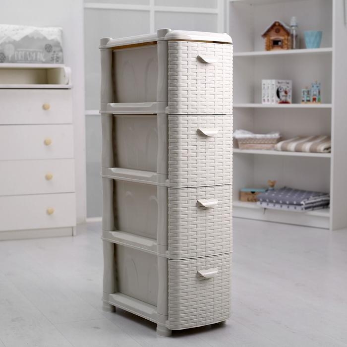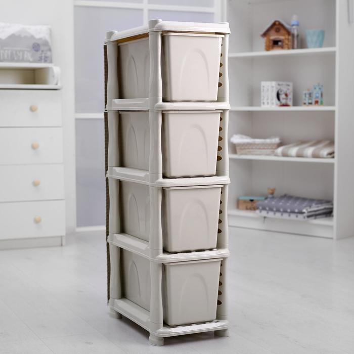 Комод 4-х секционный "Плетёнка", цвет слоновая кость