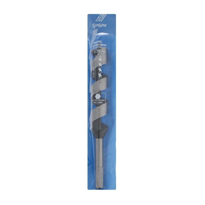 Сверло по дереву шнековое ТУНДРА, шестигранный хвостовик, 28 х 230 мм