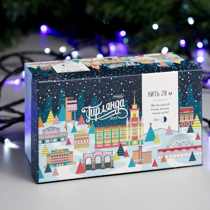 Гирлянда «Нить» 20 м, IP44, тёмная нить, 200 LED, свечение бело-синее, мигание, 220 В