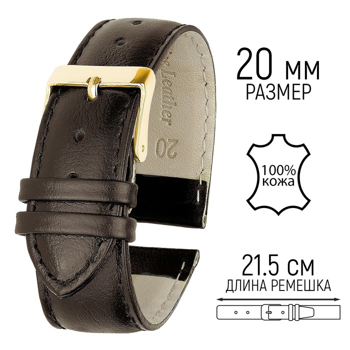 Ремешок для часов мужской, 20 мм, запряжник 90 мм, горт 125 мм, натуральная кожа, удлиненный