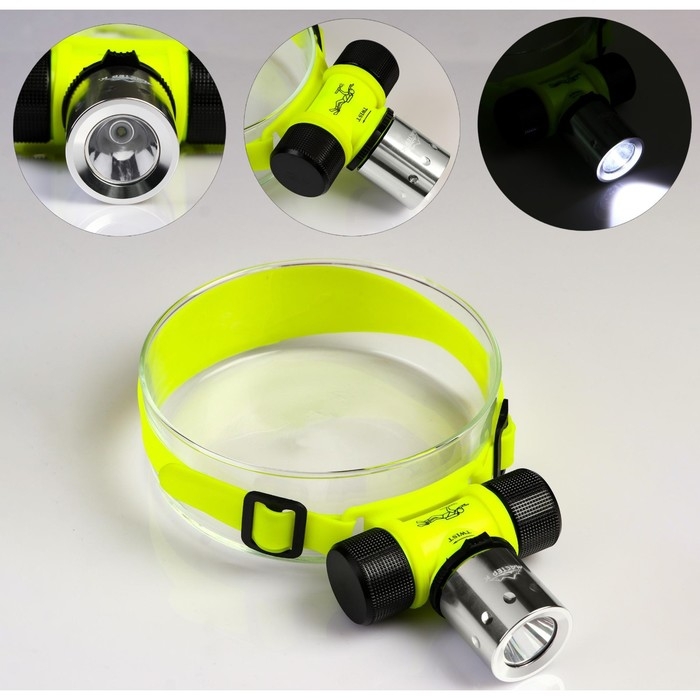 Фонарик налобный для дайвинга, водонепроницаемый, 1 диод, кислотно-жёлтый