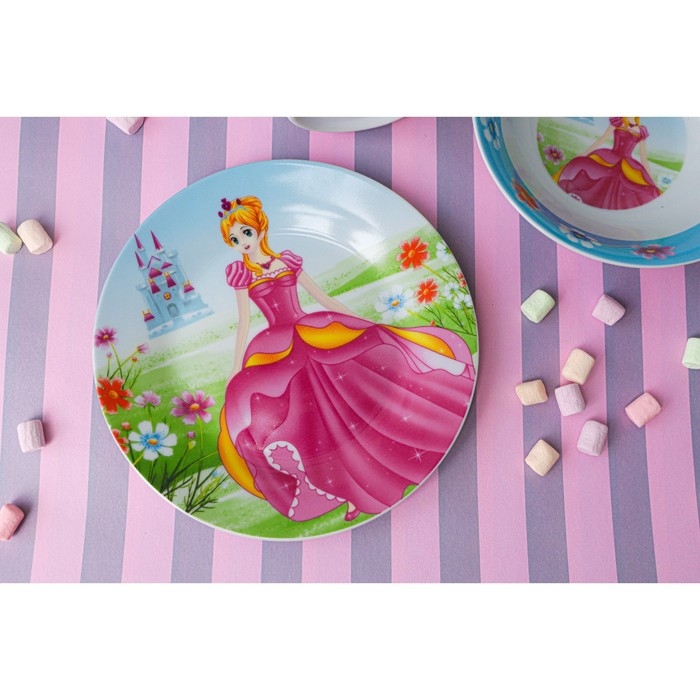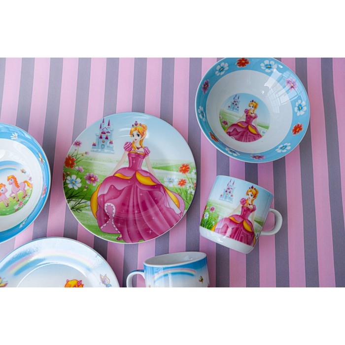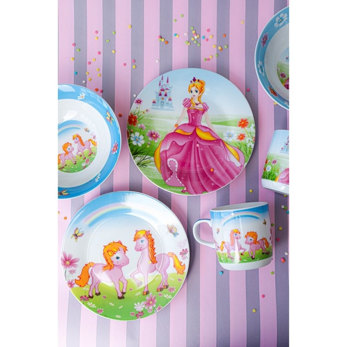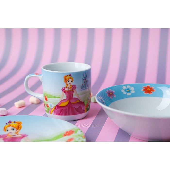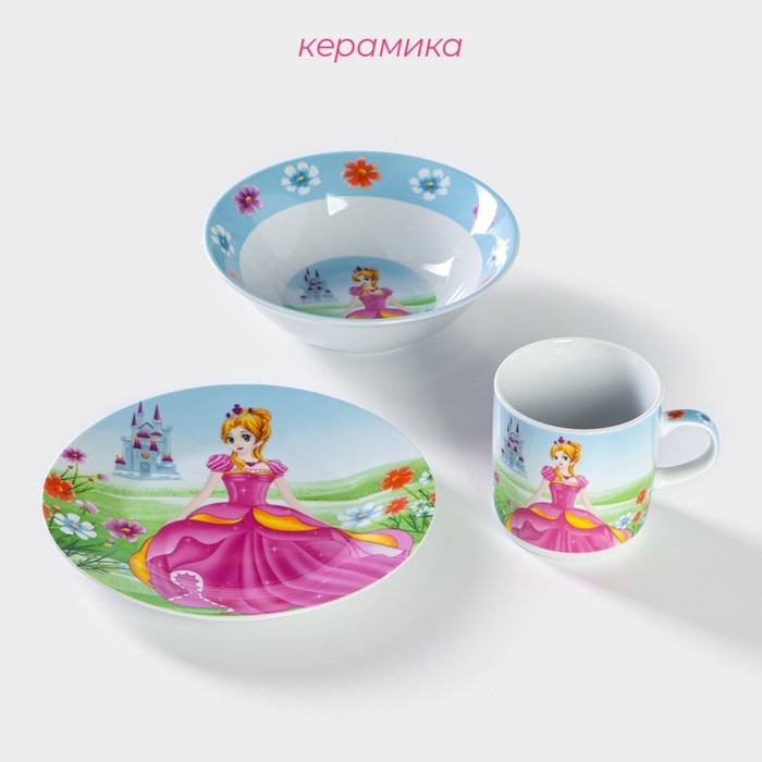 Набор детской посуды из керамики Доляна «Волшебница», 3 предмета: кружка 230 мл, миска 400 мл, тарелка d=18 см, цвет белый