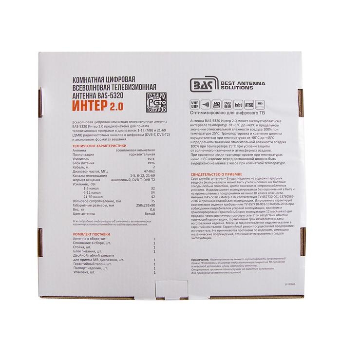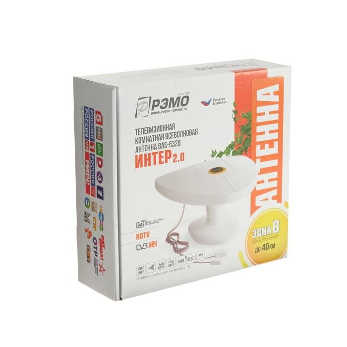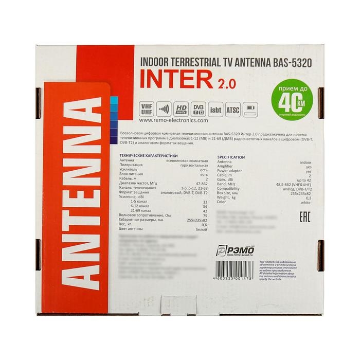 Антенна "РЭМО" BAS-5320-DX ИНТЕР 2.0, комнатная, активная, 42 дБи, 12В, DVB-T2, цифровая