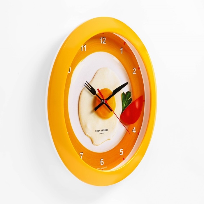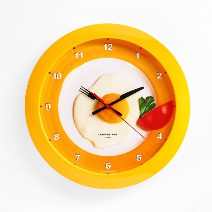 Часы настенные, серия: Кухня, "Яичница", d-29 см, желтый обод