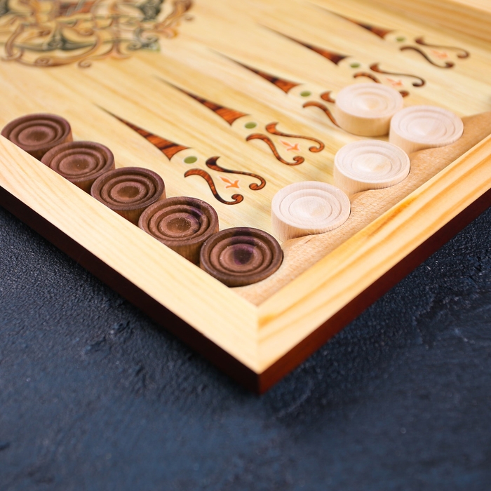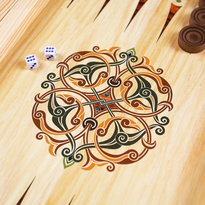 Нарды деревянные большие, настольная игра "Узор", 40 х 40 см, с полем для игры в шашки