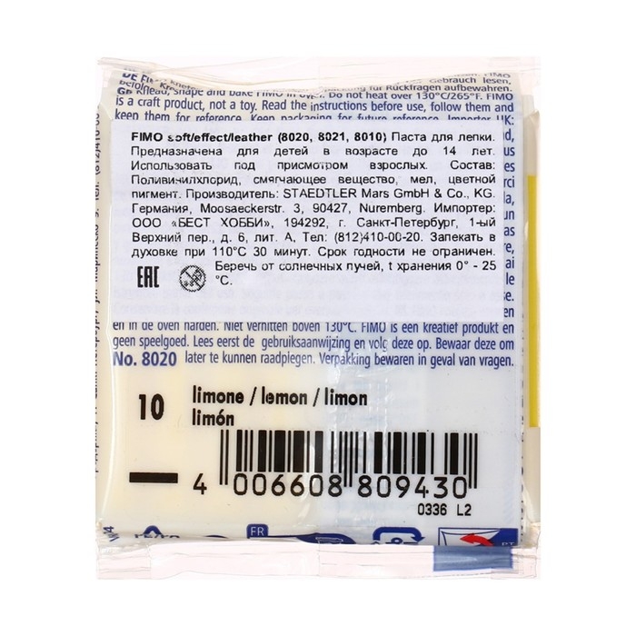 Полимерная глина FIMO подходит для начинающих мастеров и професиональных художников.ОсобенностиМасса мягкая, поэтому вы легко придадите ей нужную форму.Цвета можно смешивать для получения необходимых оттенков, которые сохранятся после обжига.После запекания изделия становятся прочными и долговечными.Упаковка легко открывается без использования ножа. Если вы не полностью израсходовали блок, то остатки можно завернуть в упаковку — так глина лучше сохранится.Термическая обработка. Готовое изделие поместите внутрь духовки на тарелке, стекле или фольге. Температура обжига не должна пpeвышaть 130 °С.Пластика рекомендована для детей старше 8 лет.