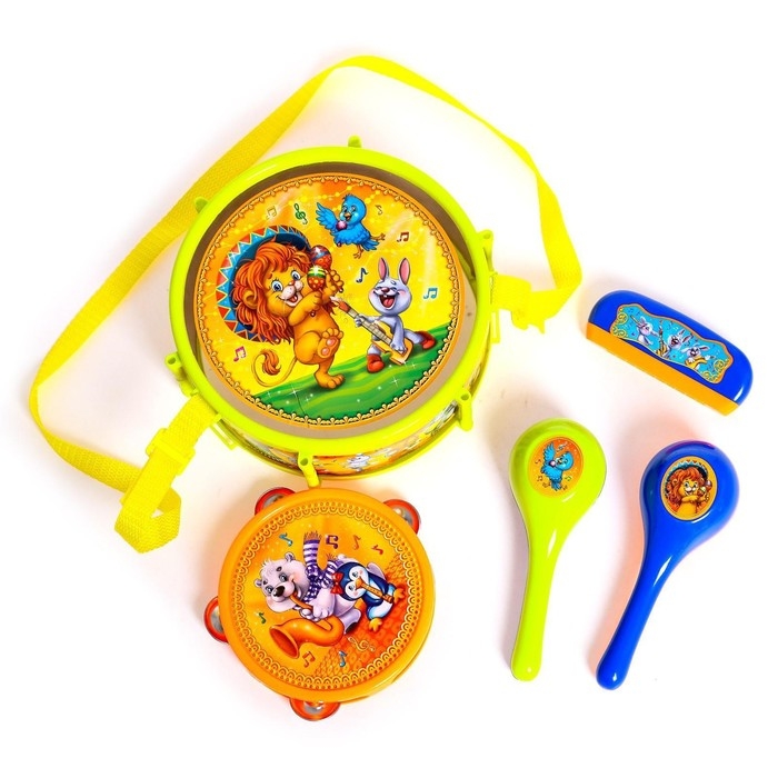 Набор музыкальных инструментов «Мульт Бэнд-2», 7 предметов: барабан, бубен, 2 маракаса, губная гармошка, 2 палочки, цвета МИКС