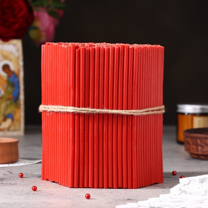 Красные церковные свечи - это свечи, которые используются в церковных обрядах и богослужениях. Они имеют стандартный размер и форму, но отличаются от обычных свечей тем, что они изготовлены из специальных материалов и имеют красный цвет.