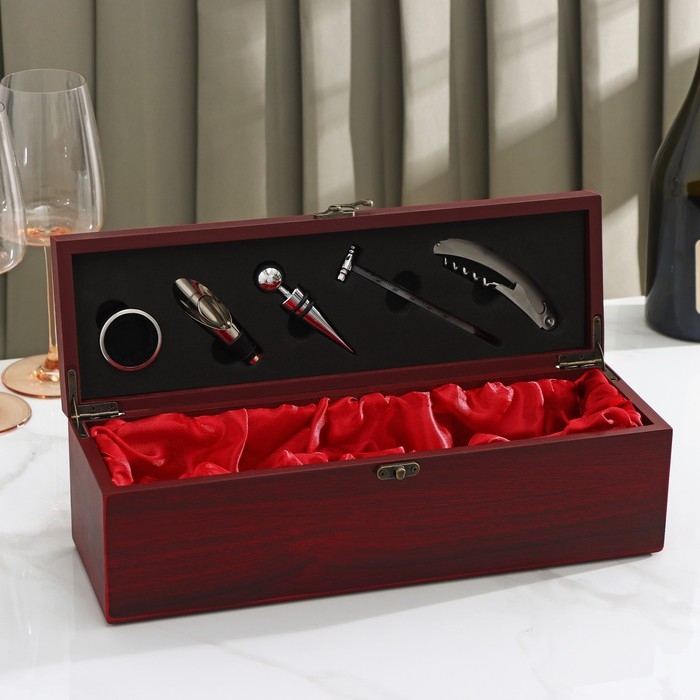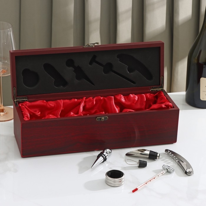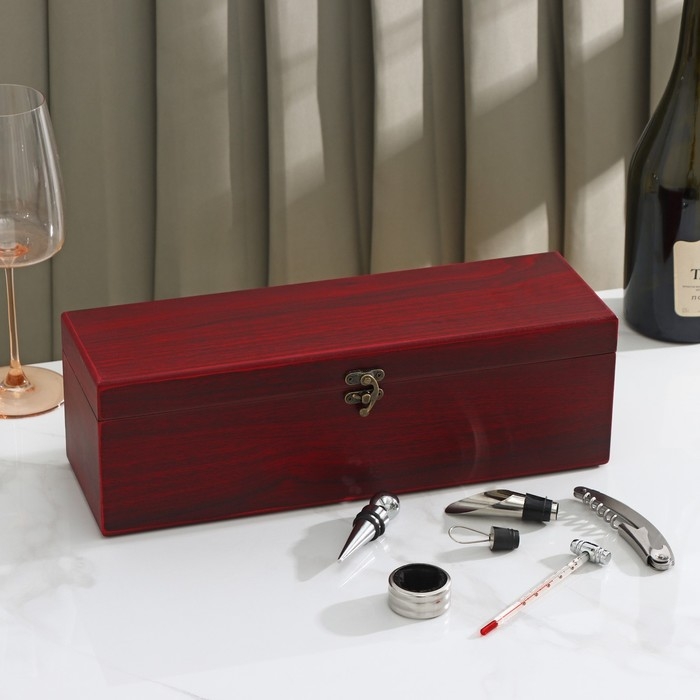 Набор для вина Доляна «Ла-Манш», 6 предметов: кейс для бутылки, каплеуловитель, кольцо, штопор, термометр, пробка