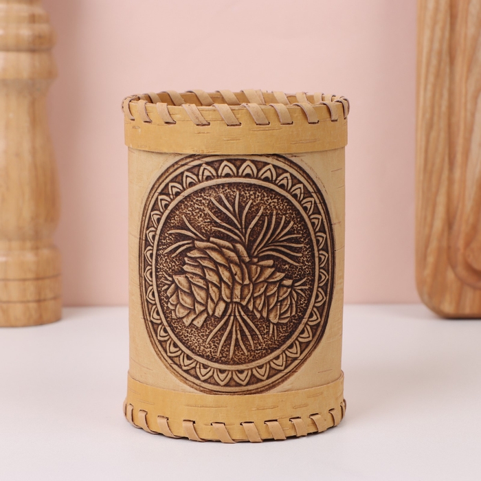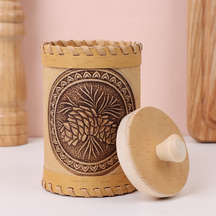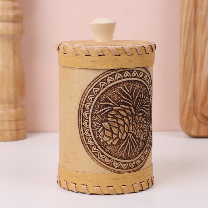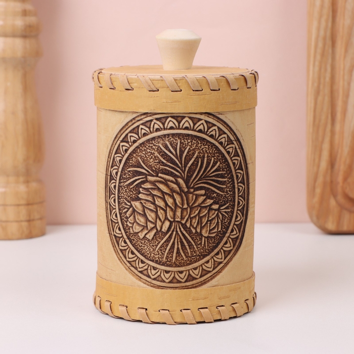 Туес «Шишки», 8×8×10 см, береста
