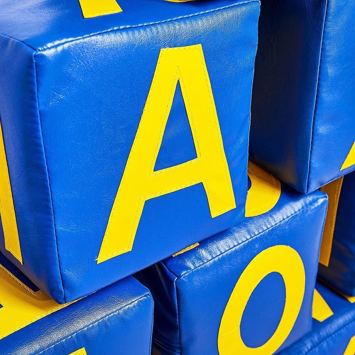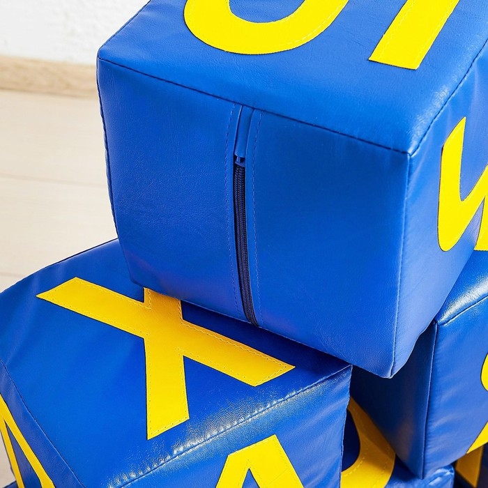 Каждый кубик состоит из упругого поролона и одет в съёмный чехол из винилискожи.