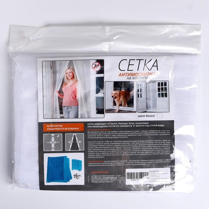 Сетка антимоскитная для дверей, 100 × 210 см, на магнитах, цвет белый