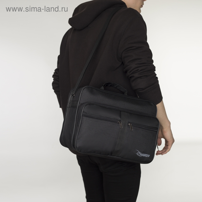 Сумка мужская на молниях Luris, длинный ремень, цвет чёрный
