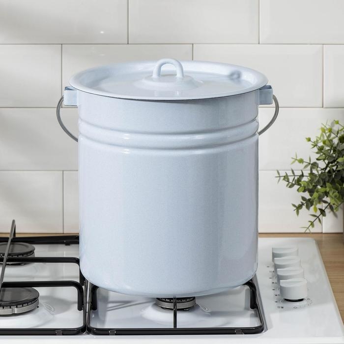 Ведро эмалированное, 12 л, с крышкой, цвет голубой