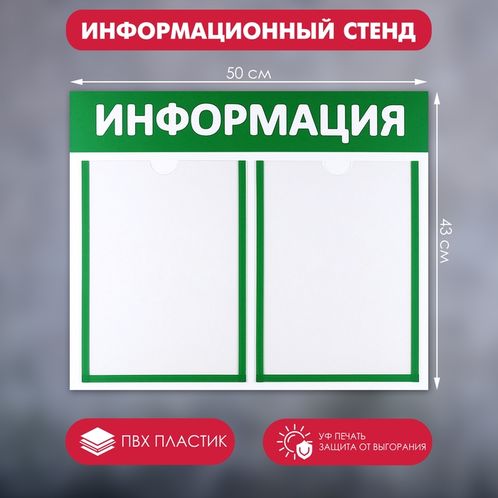 Информационный стенд «Информация» 2 плоских кармана А4, цвет зелёный