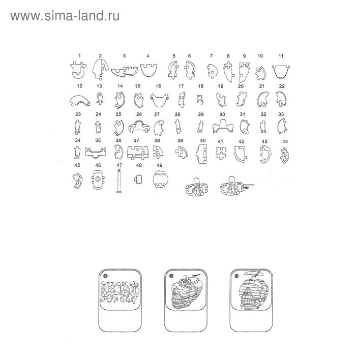 3D пазл кристаллический «Череп, 49 деталей, световые эффекты, работает от батареек