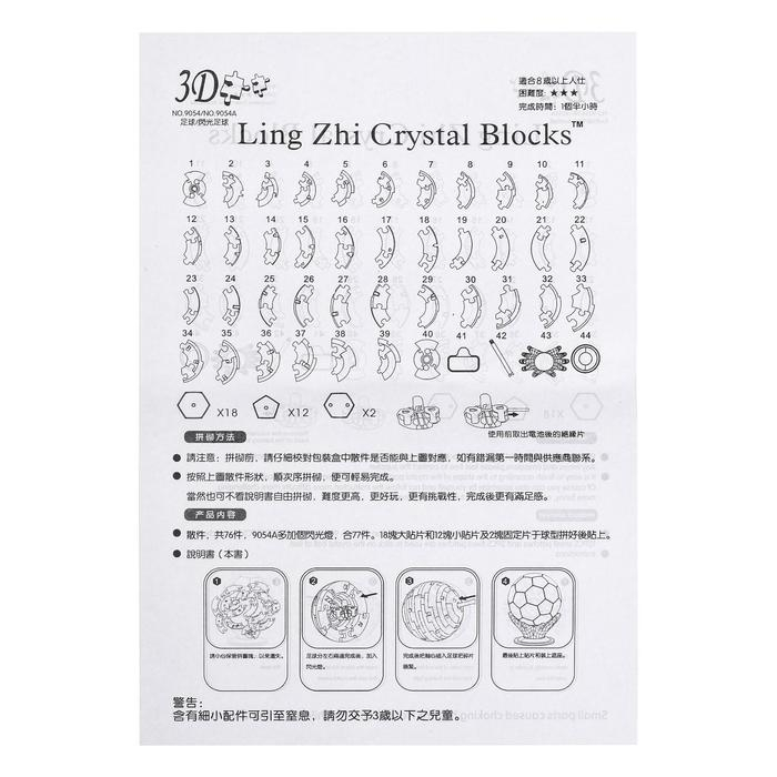 Пазл 3D кристаллический «Мяч», 77 деталей, световые эффекты, работает от батареек, МИКС