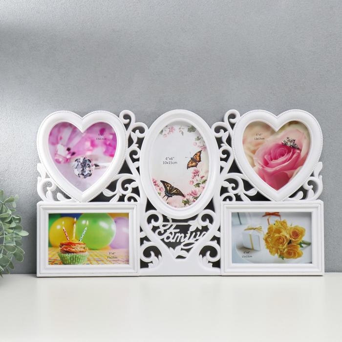 Фоторамка пластик на 5 фото 10х15 см, 13х13 см, 16х11 см "Семейное древо" белая 48,5х28 см