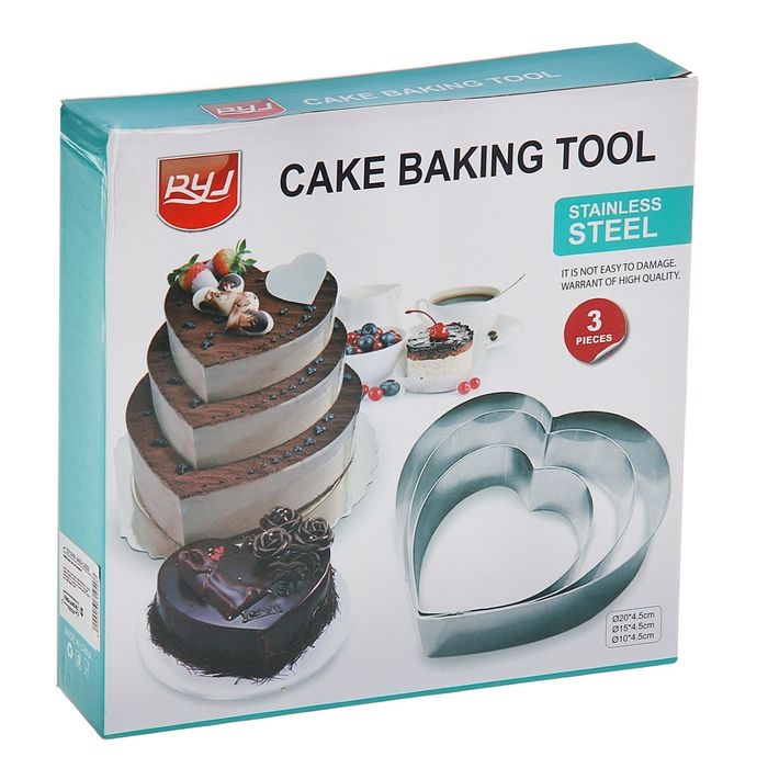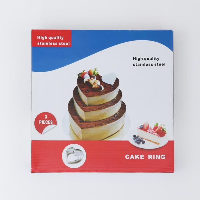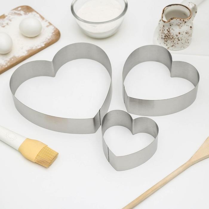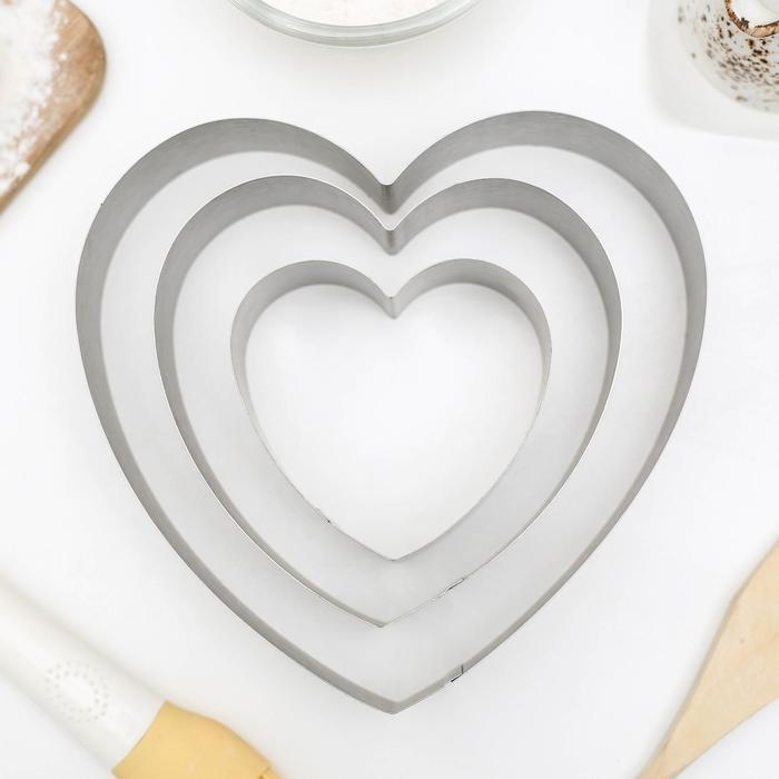 Набор форм для вылкадки и выпечки KONFINETTA «Сердце», 3 шт, 20×20×4,5 см, 15,5×15×4,5 см, 10×10×4,5 см, цвет серебристый